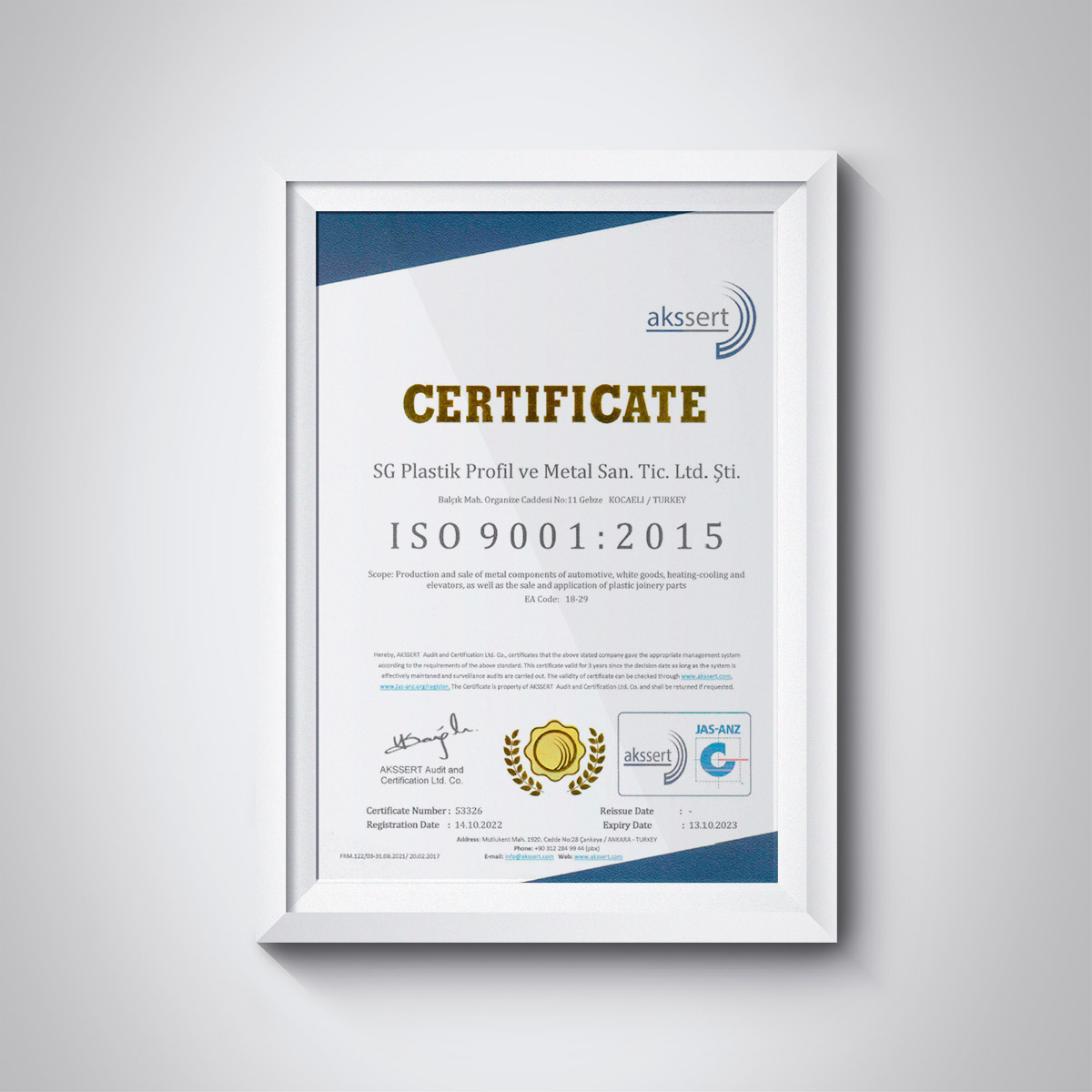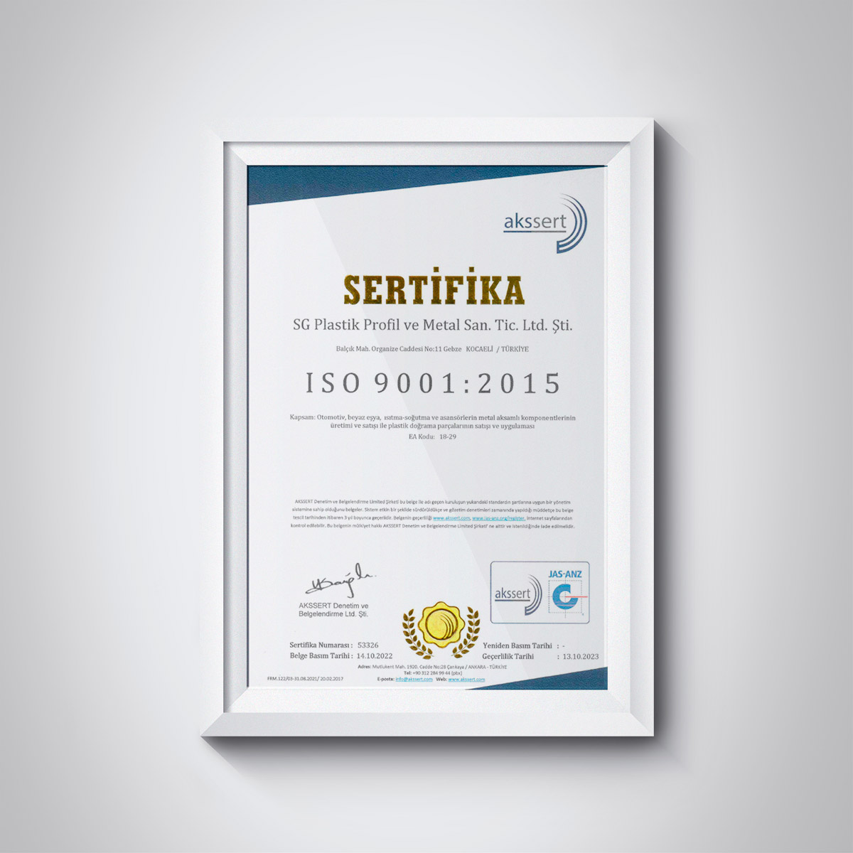 ISO 9001:2015 KALİTE SERTİFİKASI